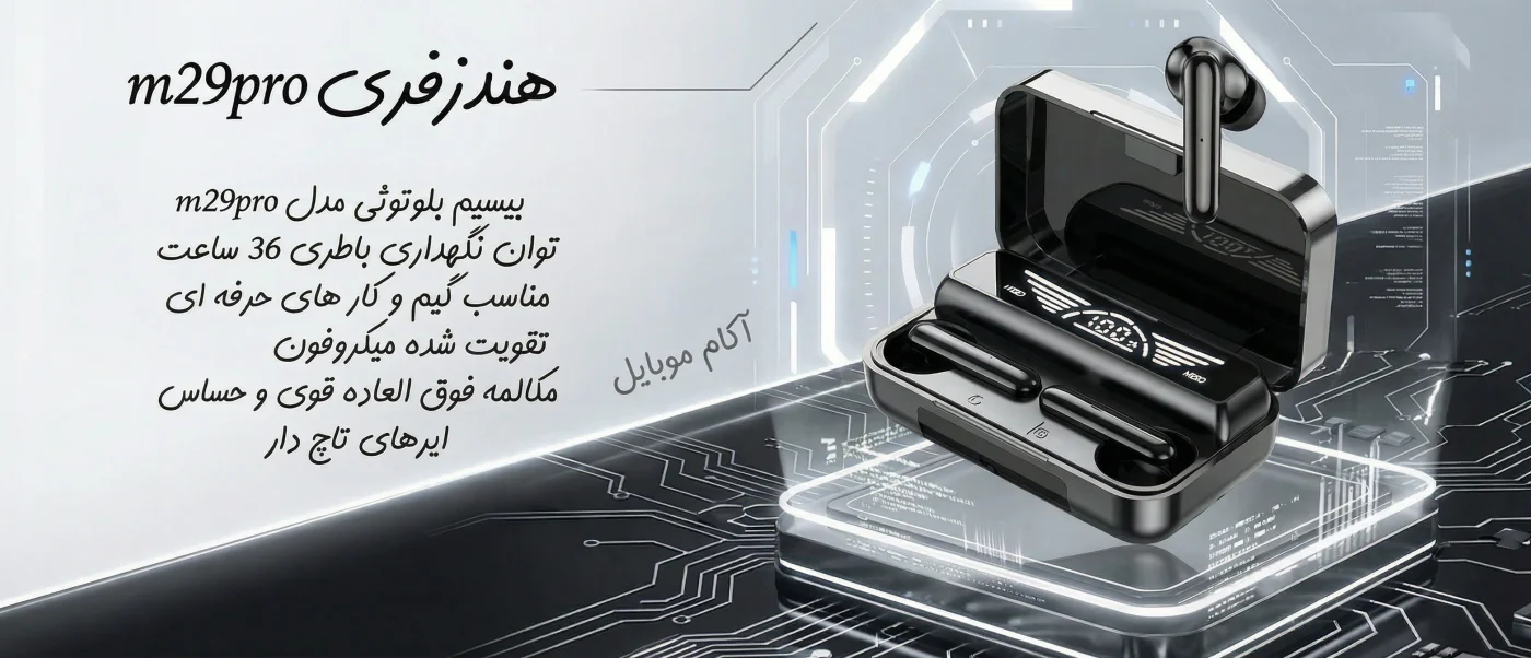 M29 Pro ۲۰۲۵ با نویز کنسلینگ فعال (ANC + شفافیت محیطی)، نمایشگر لمسی رنگی روی کیس، بلوتوث ۵.۴ با اتصال فوقسریع و پایدار، صدای ۱۴.۲ میلیمتری HiFi و بیس بسیار ...